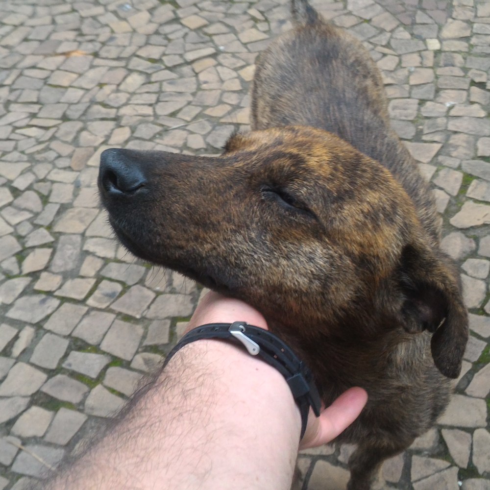 Cão recebendo carinho em Cunha.
